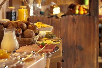 Fühstücksbuffet mit Eierspeisen, Weißwurst, Cerealien, Marmeladen, Joghurt uvm.